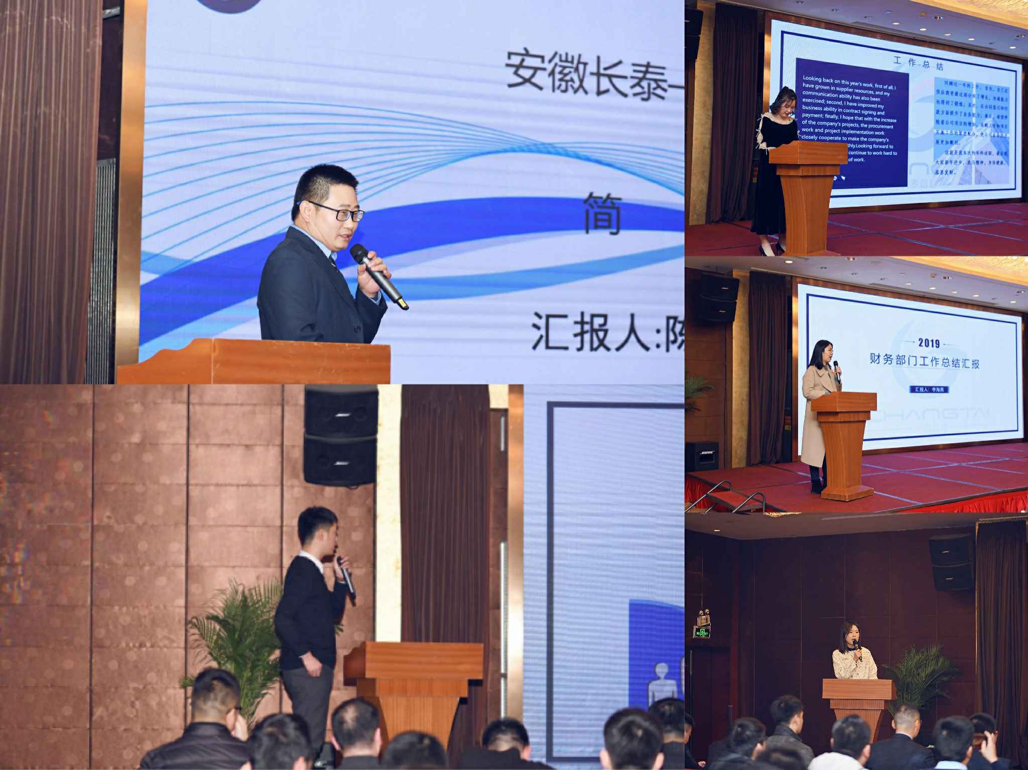 根据年会庆典议程,1月12日下午,安徽长泰全体员工在酒店会议大厅签到入场并进行2019年工作述职报告。总结过去一年取得的辉煌成绩,谋划新一年的发展布局。各部门负责人及分管领导分别就各岗位职责、2019年成果展示和凸显问题进行系统回顾和深度反思,同时就2020年发展计划和落实步骤进行全面阐述。