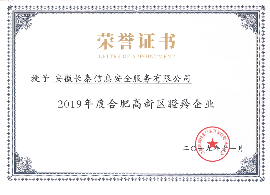 2019年,11月20日,合肥高新区2019年高成长企业榜单正式发布,高新区共认定了502家高成长企业,其中雏鹰企业275家、瞪羚培育企业72家、瞪羚企业149家、潜在独角兽企业3家、独角兽企业1家、平台型龙头企业2家。作为其中的高科技企业——安徽乐竞在线注册-乐竞(中国)成功入选瞪羚企业榜单。